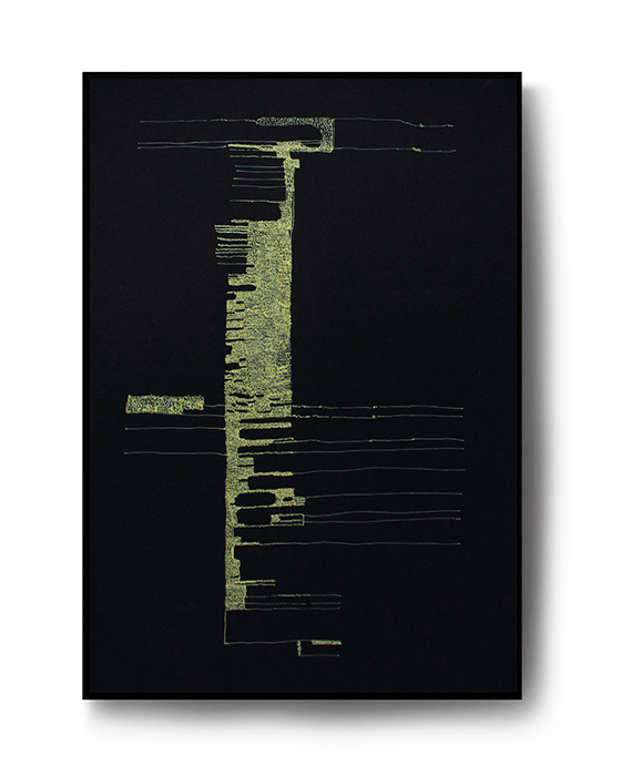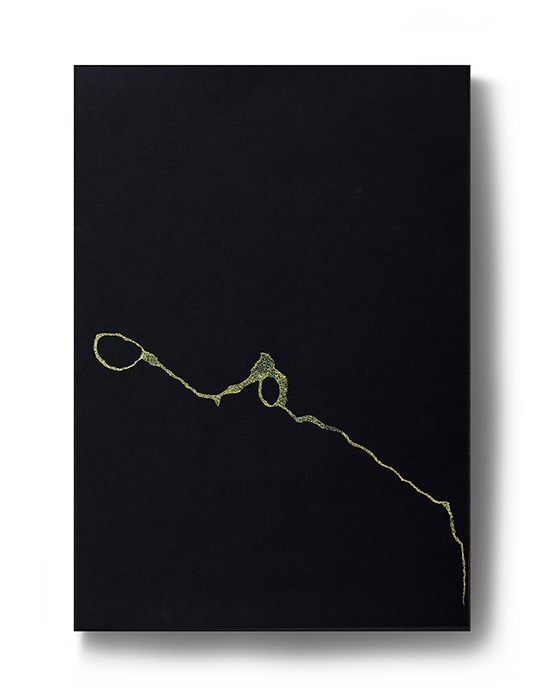 Dibujo en tinta dorada sobre papel Fabriano Elerre 200 gr. 100 x 70 cm. 2025